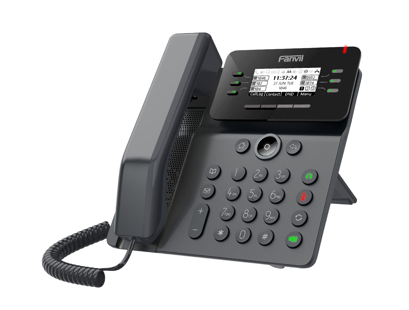 Das Fanvil V62W ist ein stilvolles und benutzerfreundliches Business-IP-Telefon. Es verfügt über einen 2,8-Zoll (320x240) hochauflösenden Farbbildschirm, unterstützt 12 SIP-Leitungen und ermöglicht eine 6-Wege-Audiokonferenz. Mit Funktionen wie HD-Audio, dualen Gigabit-Ports, integriertem 2,4G/5G Wi-Fi (Wi-Fi 6) und Bluetooth 5.4 ist das V62W für verschiedene Geschäftsanwendungsszenarien geeignet und bietet den Nutzern eine ausgezeichnete interaktive Erfahrung sowie komfortable Sofortkommunikationsdienste.