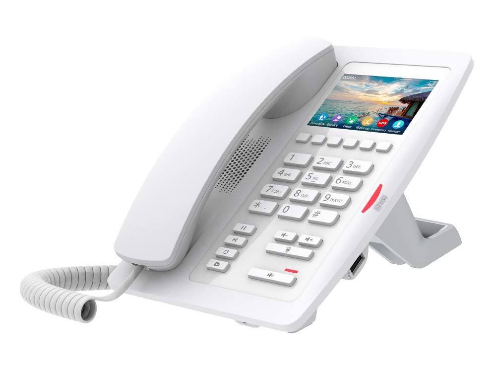 Das Fanvil H5, erhältlich in zwei Farben (Weiß & Schwarz), ist eine hervorragende und preisgünstige Wahl für ein Hotel-IP-Telefon. Mit einem 3,5-Zoll-Farbdisplay ist es zudem benutzerfreundlich. Hotels können Informationen wie die Adresse, das Logo und relevante Telefonnummern auf dem Bildschirm individuell anpassen, um den Hotelgästen ein verbessertes Wohnerlebnis zu bieten.